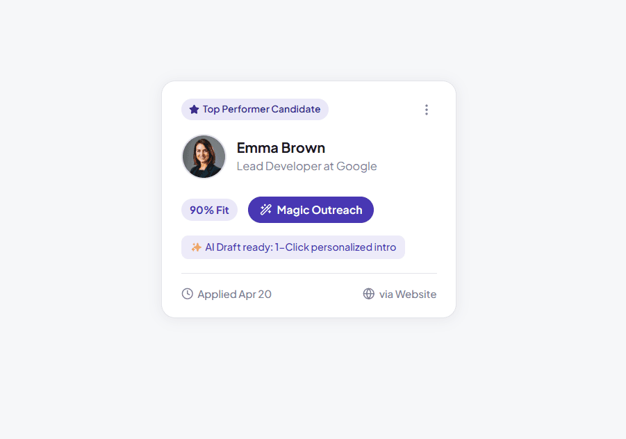 The Problem: High fit scores tell a recruiter who to hire, but they don't solve the friction of actually starting the conversation.