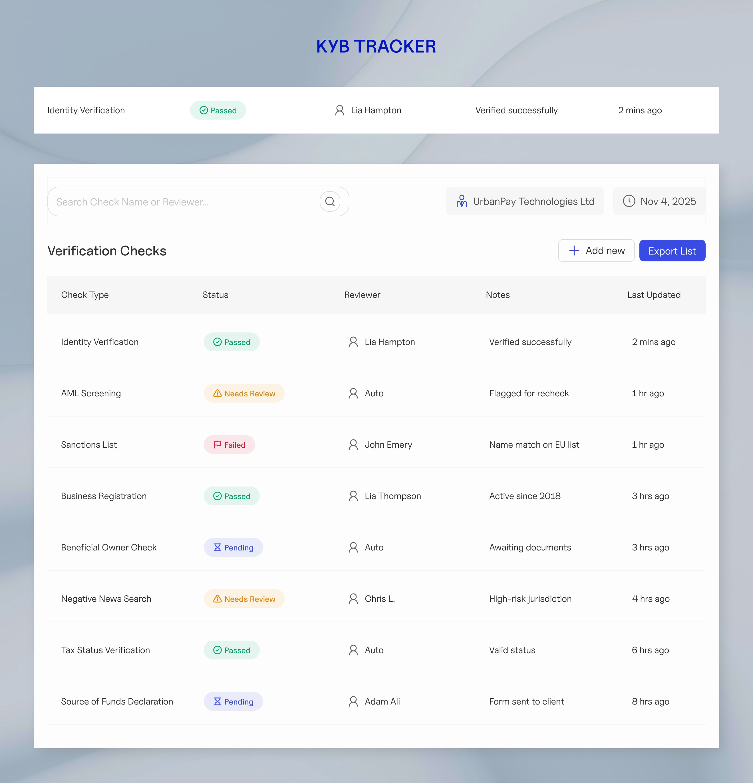 Designing for Consistency: A Flexible KYB Tracker for Baselayer.